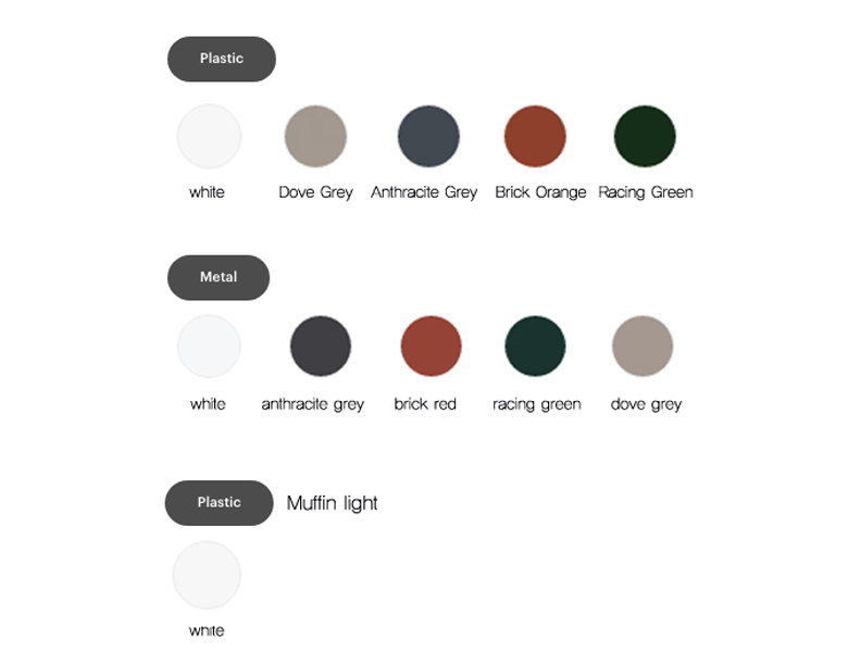 Muffin은 필요에 따라 커피테이블·사이드테이블이나 스툴 역할을 할 수 있는 다용도 보조테이블로서 거실과 침실, 테라스에서 정원까지 실내외 공간에서 사용할 수 있습니다. Muffin을 뒤집은 상태에서 메탈마감 상판을 추가적으로 올릴수도 있으며, 백색 폴리에틸렌 프레임 내부에 조명을 넣은 Muffin Light 버전도 있습니다.